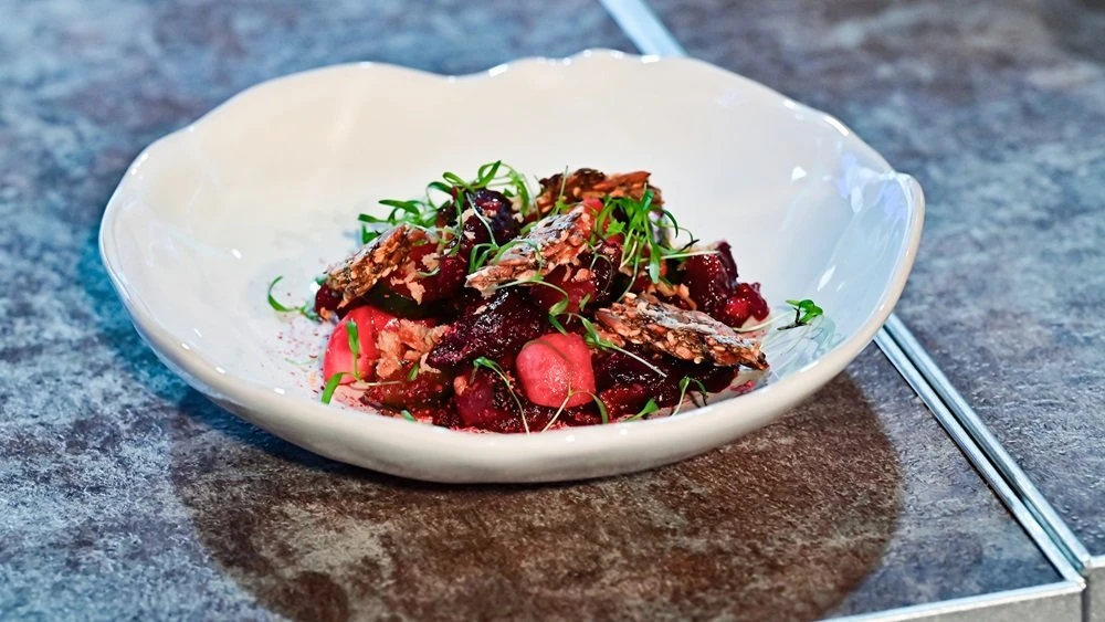 Four dishes were prepared for the participants: a salad of roasted beetroot with compressed cucumber and radish, buckwheat with porcini mushrooms, slow-cooked turnip with root vegetables, and carrot gingerbread with nuts.