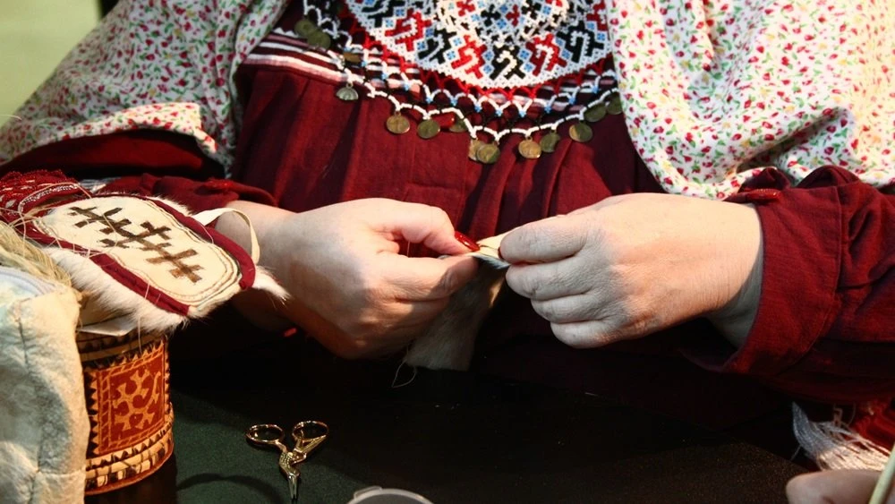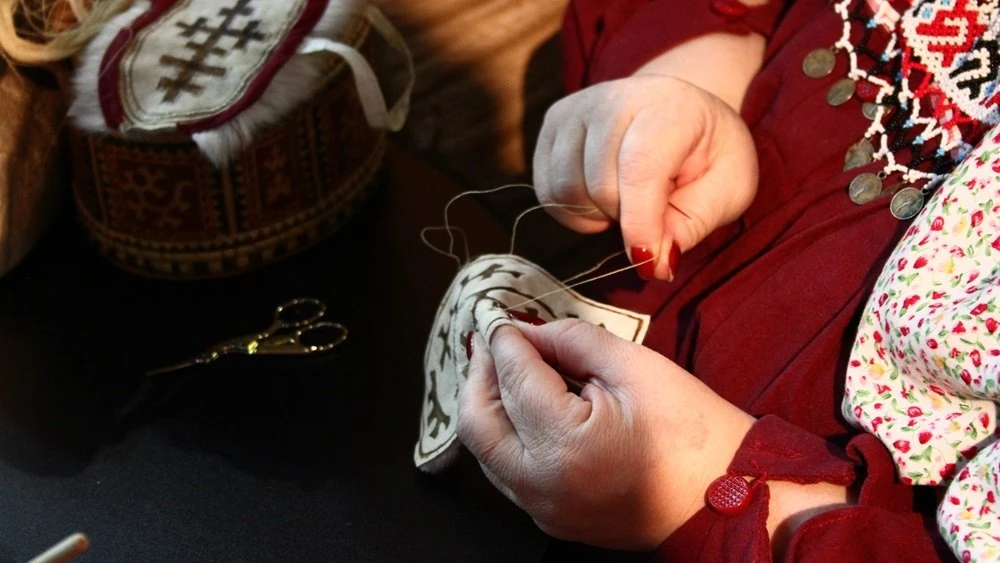 "For example, the pattern that we call 'hare's ears', and elsewhere known as 'deer antlers', actually belonged to our greatest goddess, Kaltash. Women apply it so that the family line continues and so that the children are safe. And if it is a bird — it symbolises spring and a connection with heaven. That is why there are many birds on clothing. Also, it is very important to understand that every craftswoman puts something of her own into the pattern: in one family, it might be, for example, deer antlers, while in another — a cedar cone. So, there is a lot of personal, family meaning here," Yelena Fedotova explained and demonstrated.
