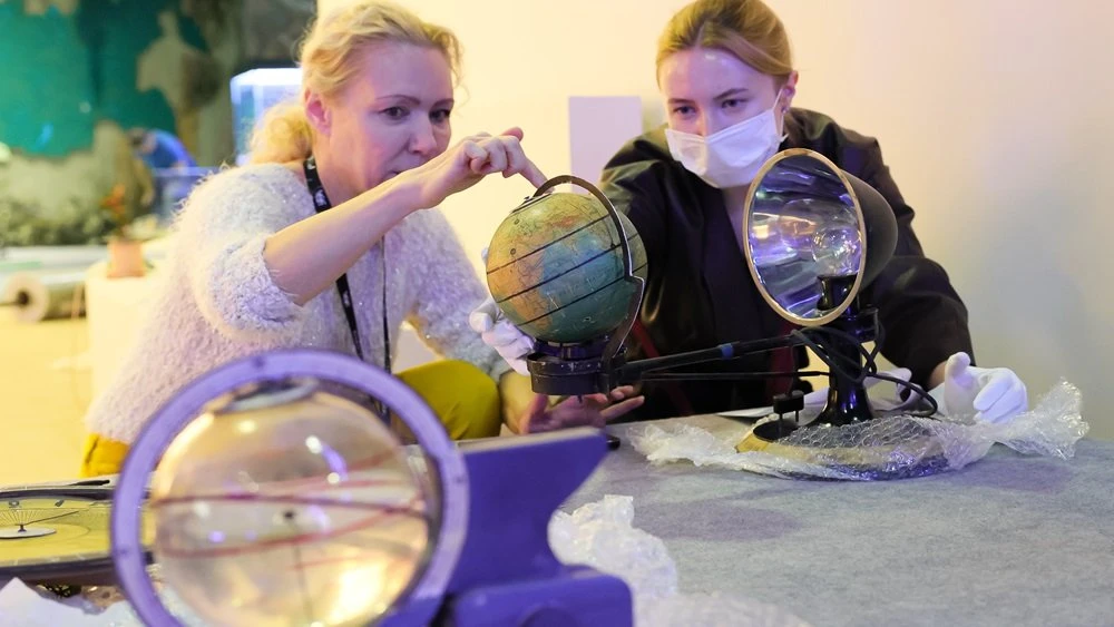 Educational instruments created by a school teacher to explain the movement of the Earth to children are now presented at the "Geography Lessons" exposition at the National Centre RUSSIA. The "Small School Planetarium", the Tellurium and the "World Clock" by Ivan Voytenko once stood in Saratov classrooms and will now become part of a federal project about how our country studied and explained geography.