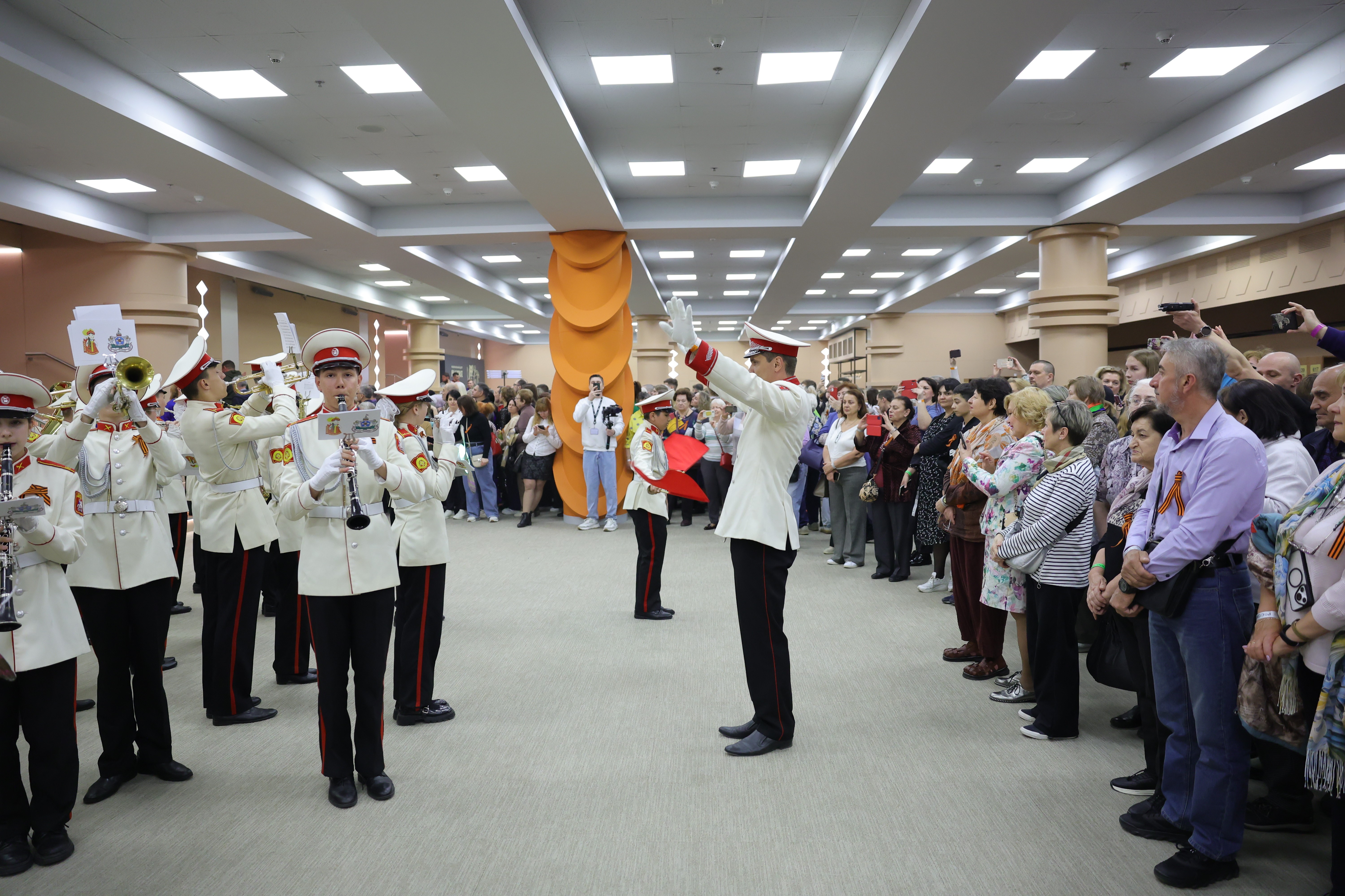 On May 8, a large festive concert "Our Victory – For All Time!" took place at the National Centre RUSSIA. The audience heard favourite songs from the war years, modern classical works, and new compositions created especially for this anniversary programme. Before the concert, a performance by a combined children's wind orchestra took place.