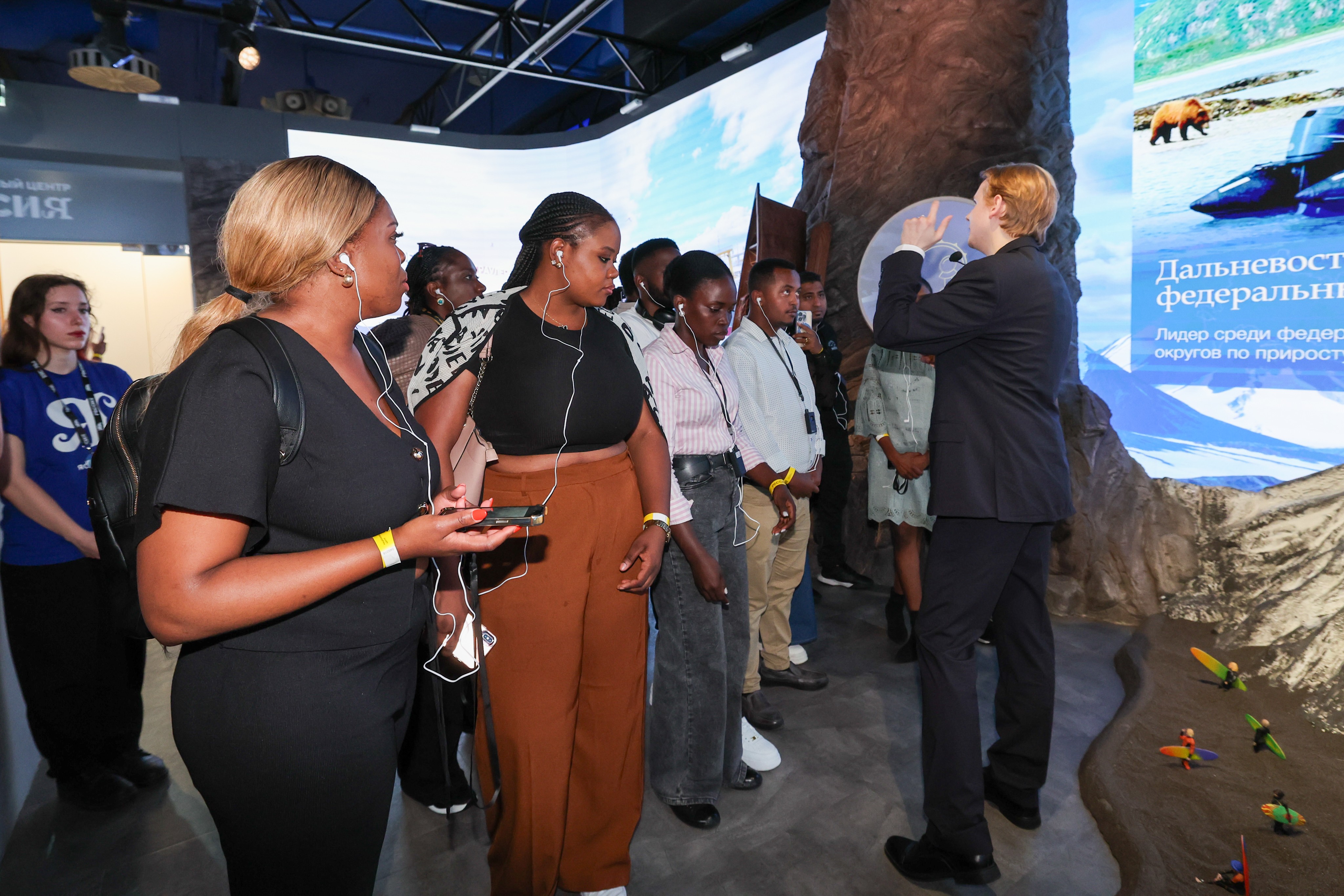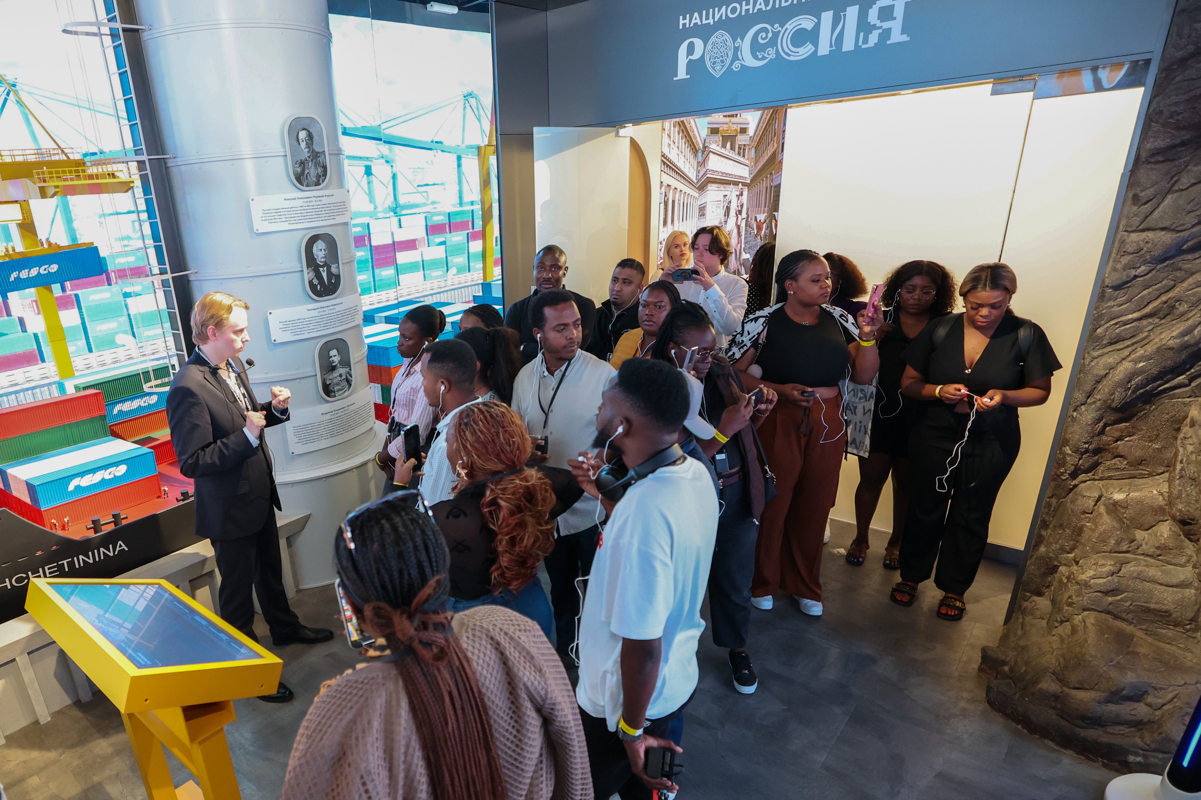 Journalists taking part in the special educational exchange programme of the RT Academy took a tour of the exposition "Journey Across Russia". There, they saw the country's key attractions and technological achievements, and got acquainted with the culture and traditions of all federal districts of Russia.