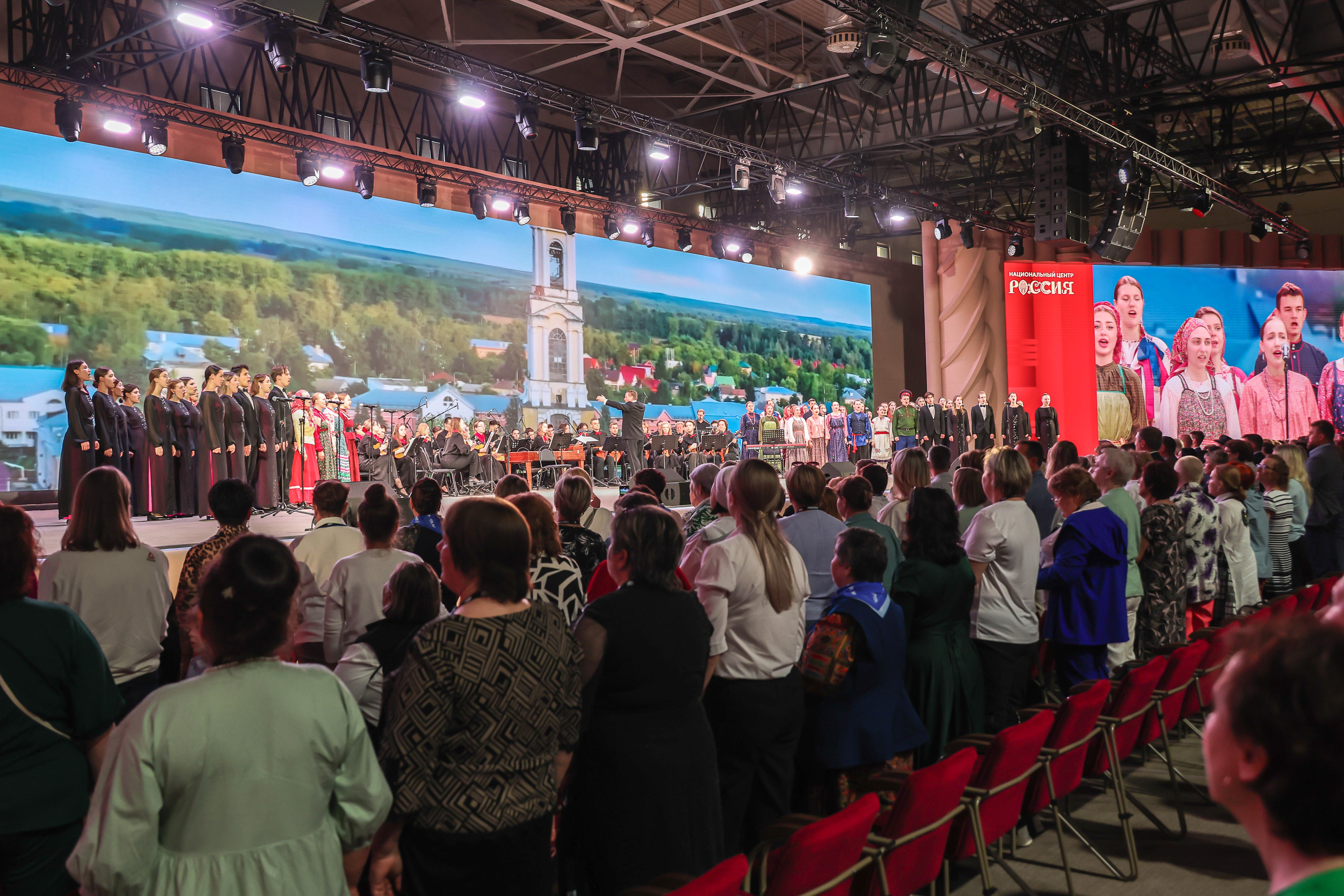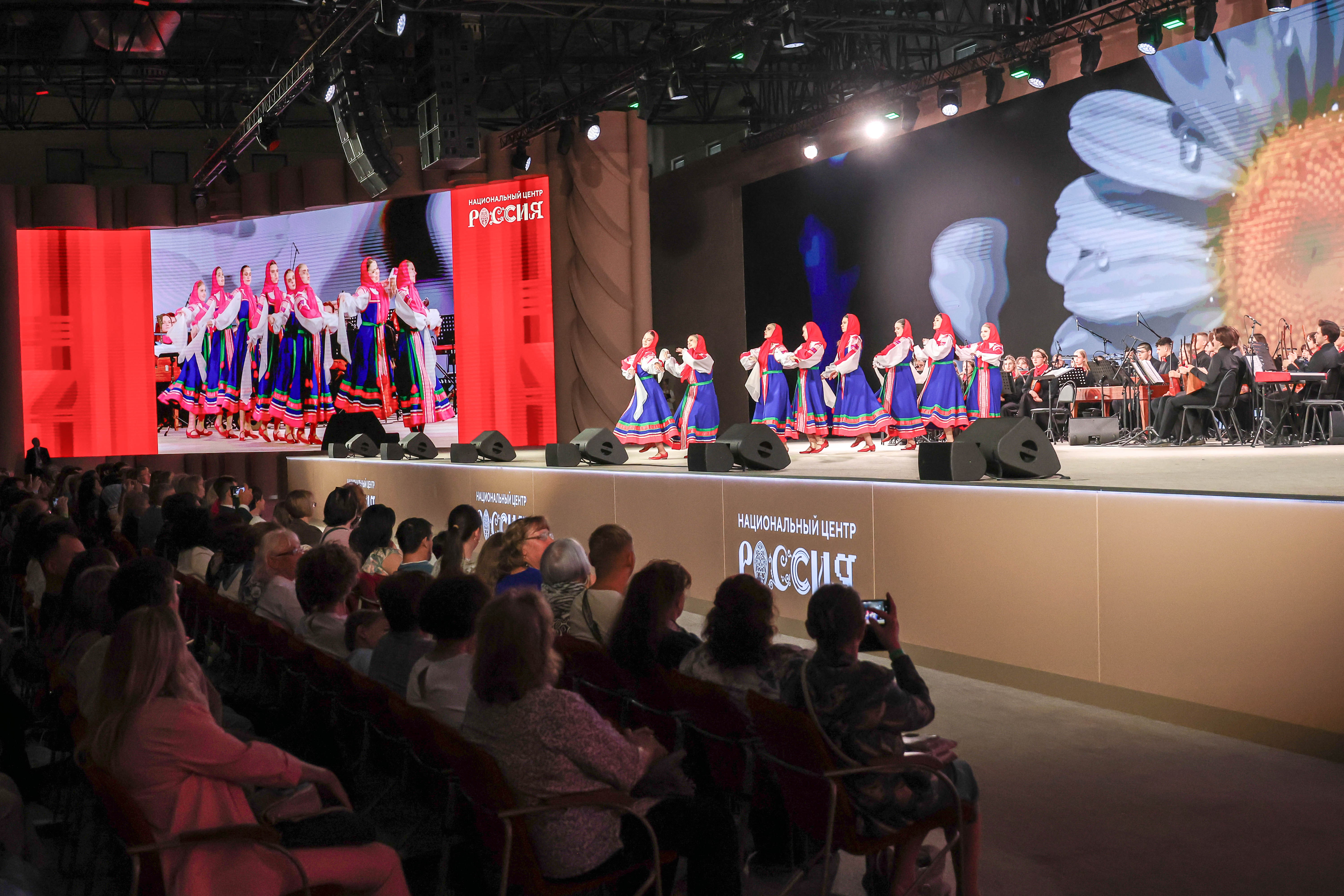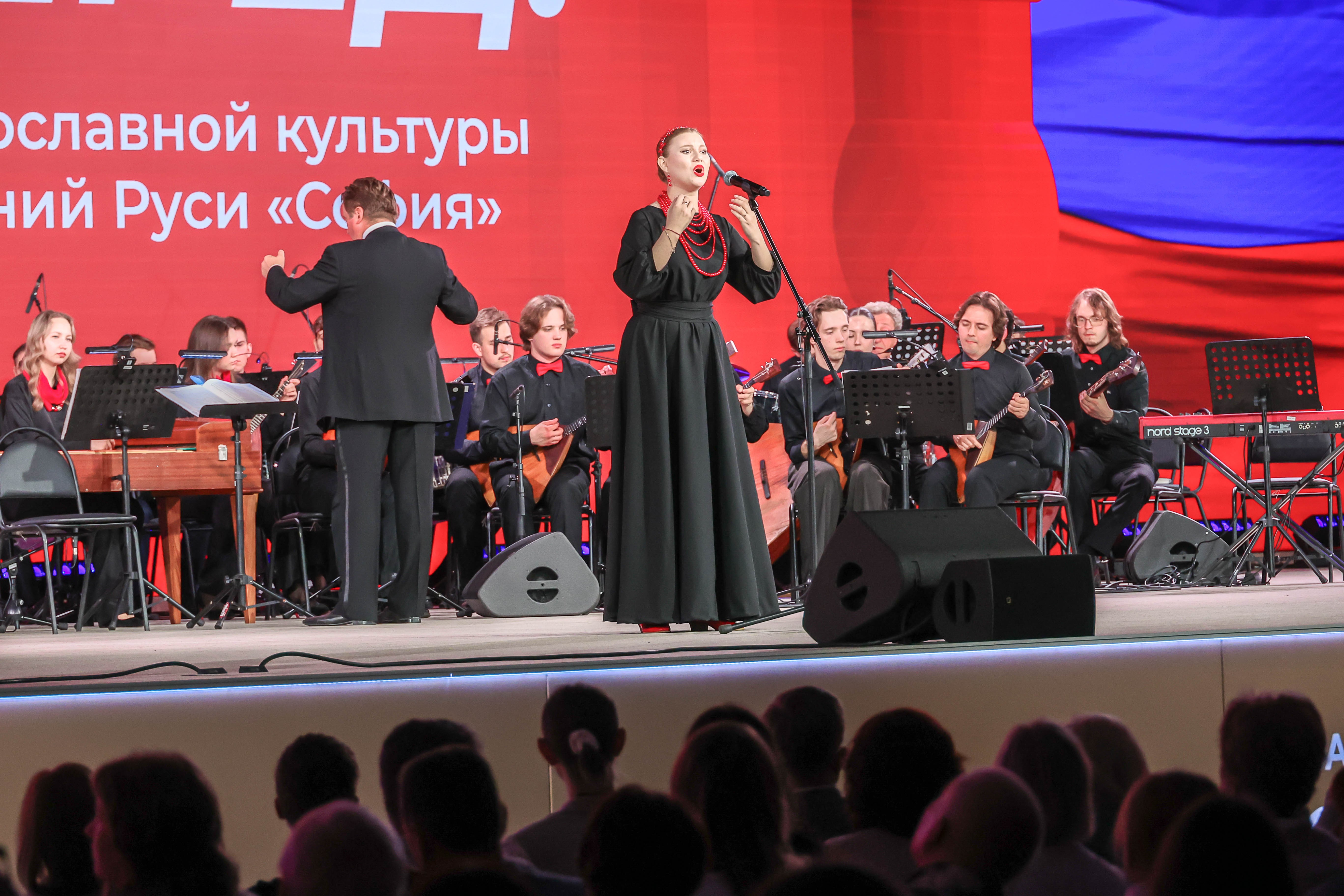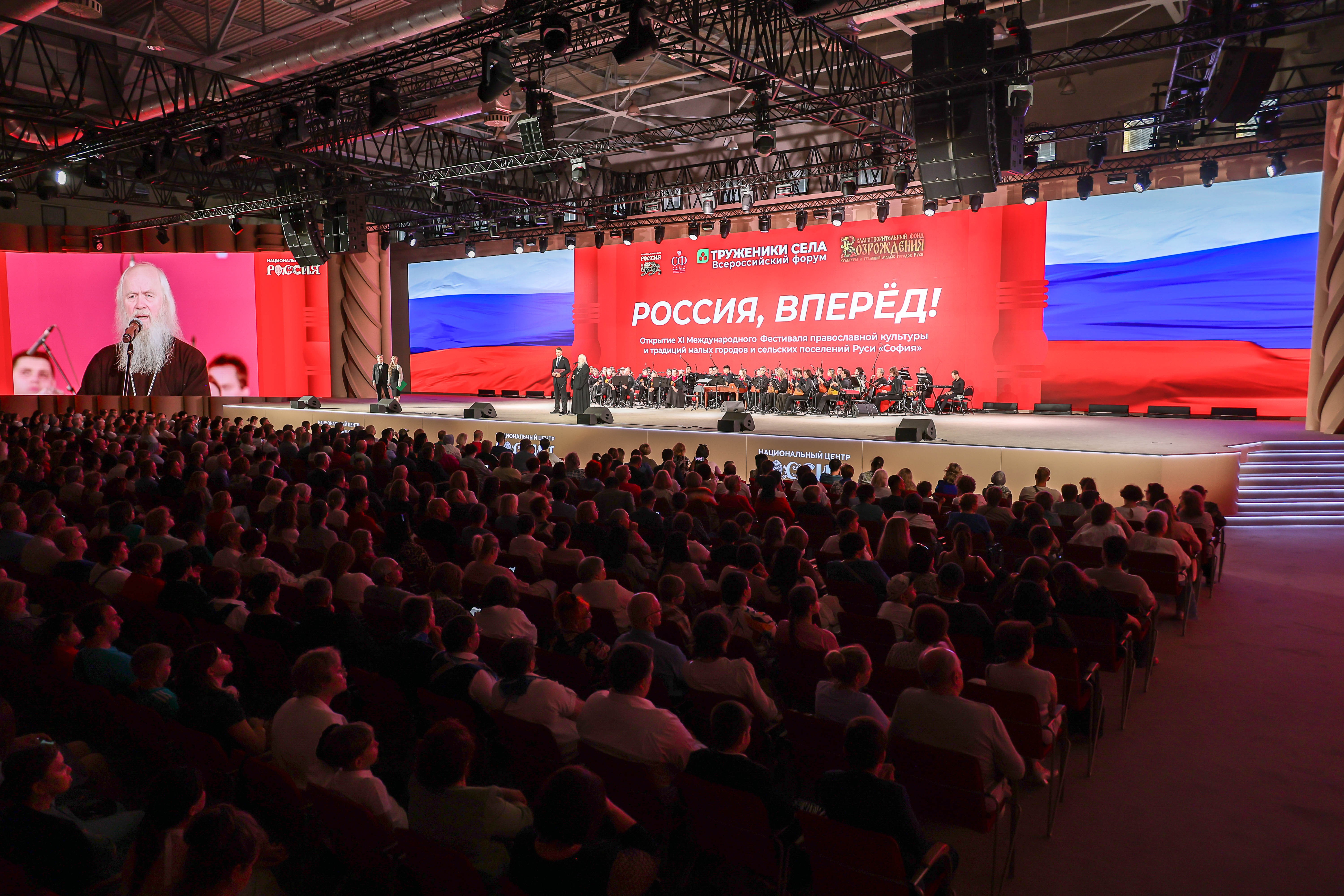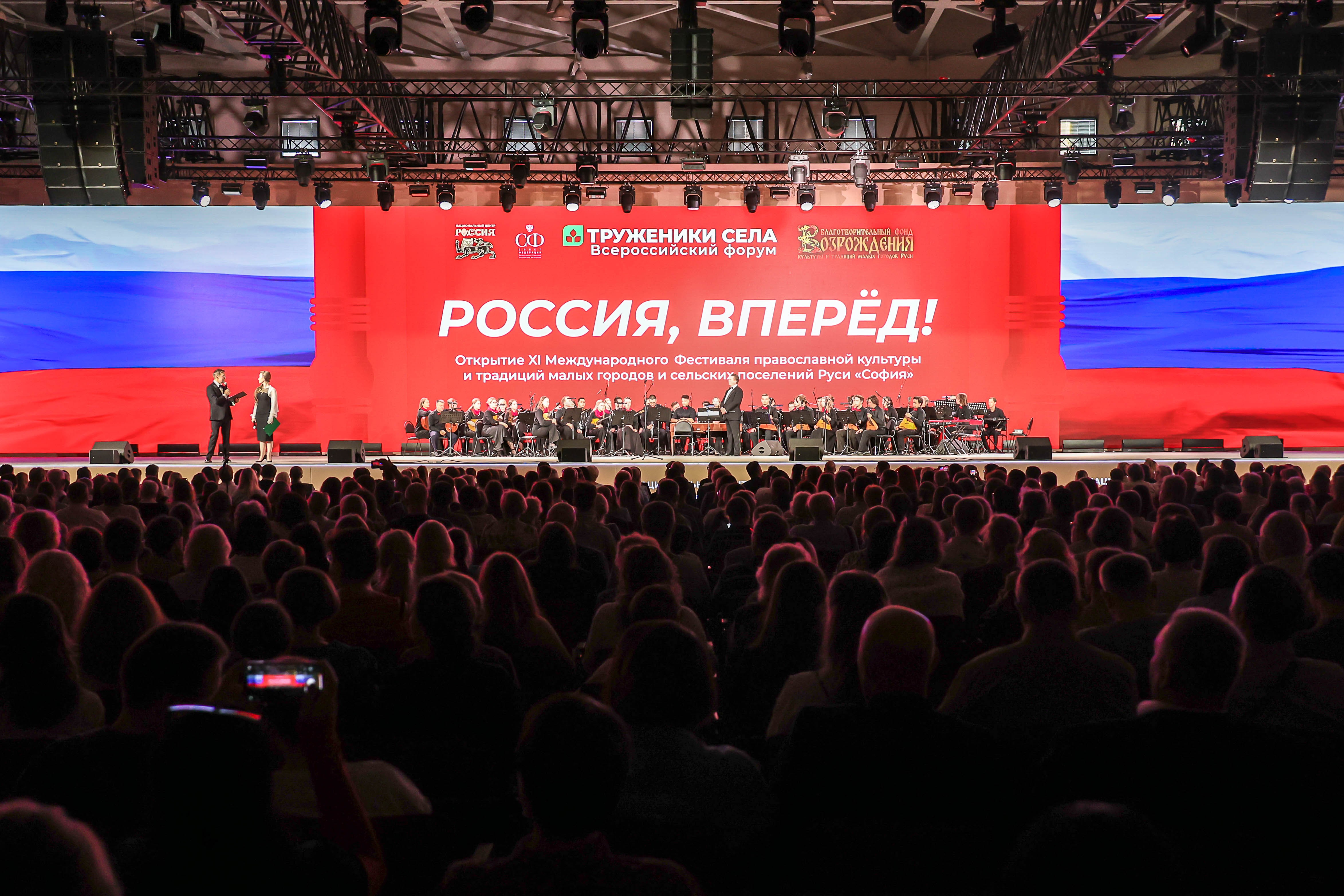 At the gala concert "Forward, Russia!", dedicated to the XI International Festival "Sofia" and the Forum of Rural Workers, performances were given by the N. P. Budashkin Orchestra of Russian Folk Instruments (MGIK), winners of the "Sofia" festival, and soloists from Vladimir Matorin's youth programme. The programme featured beloved Soviet songs.