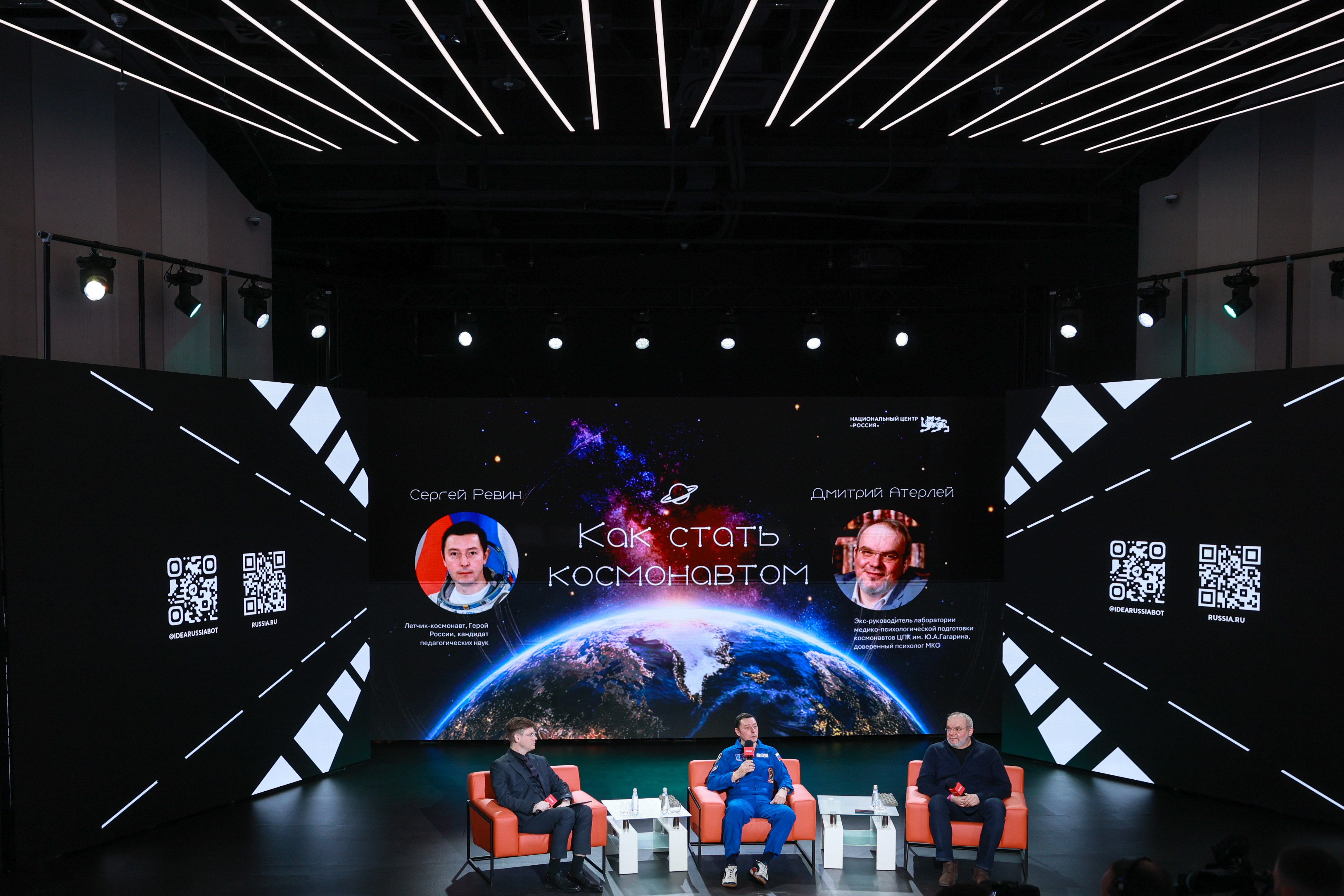 On Cosmonautics Day the National Centre RUSSIA launched a new educational project, "Space Odyssey", dedicated to the 65th anniversary of the first human spaceflight. The first event in the series, titled "How to Become a Cosmonaut", brought together everyone interested in the history, present, and future of crewed space exploration. The speakers were pilot-cosmonaut, Hero of Russia, Candidate of Pedagogical Sciences Sergei Revin and former head of the laboratory for medical and psychological training of cosmonauts at the Yuri Gagarin Cosmonaut Training Centre, trusted psychologist of the International Space Station Dmitry Aterley.