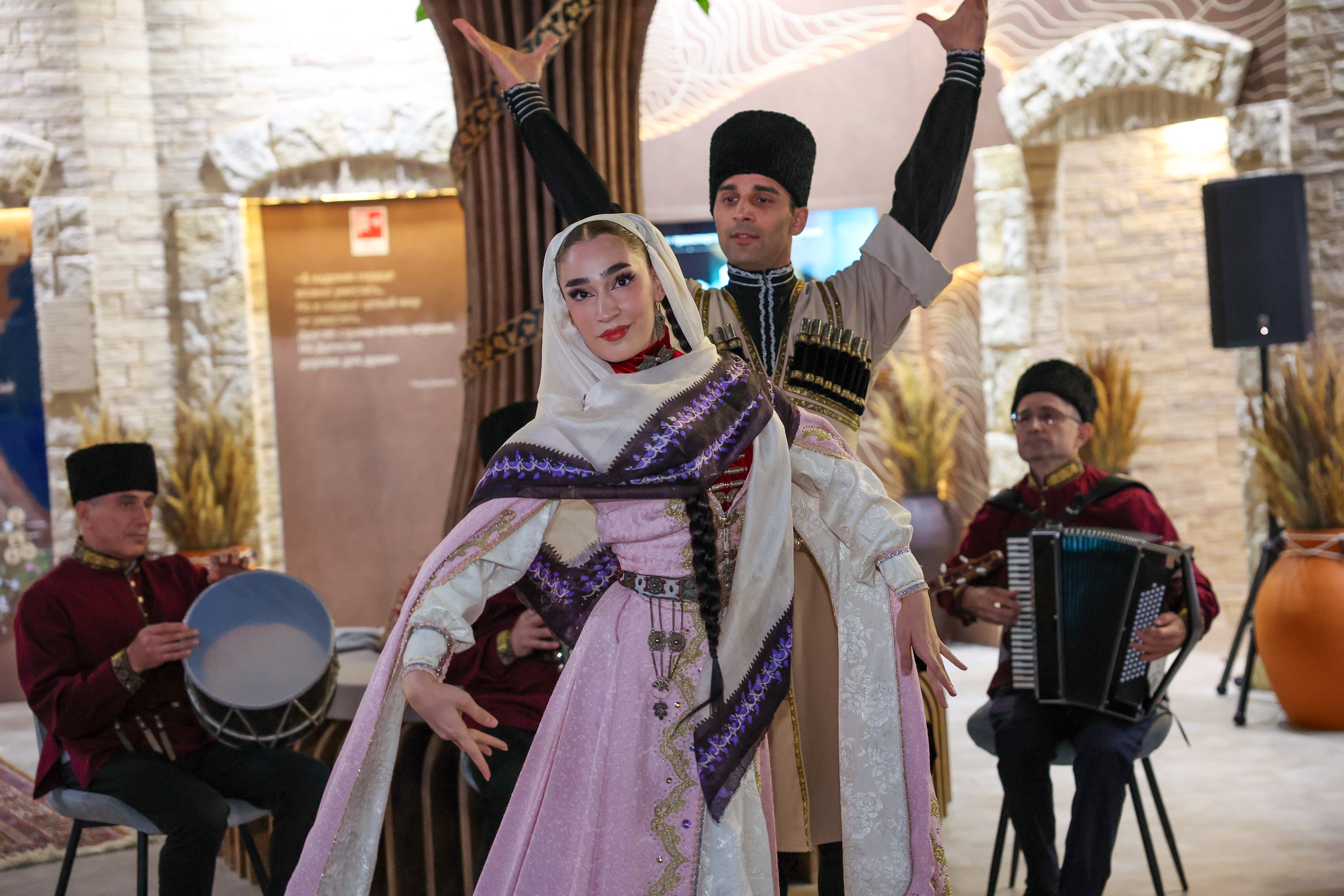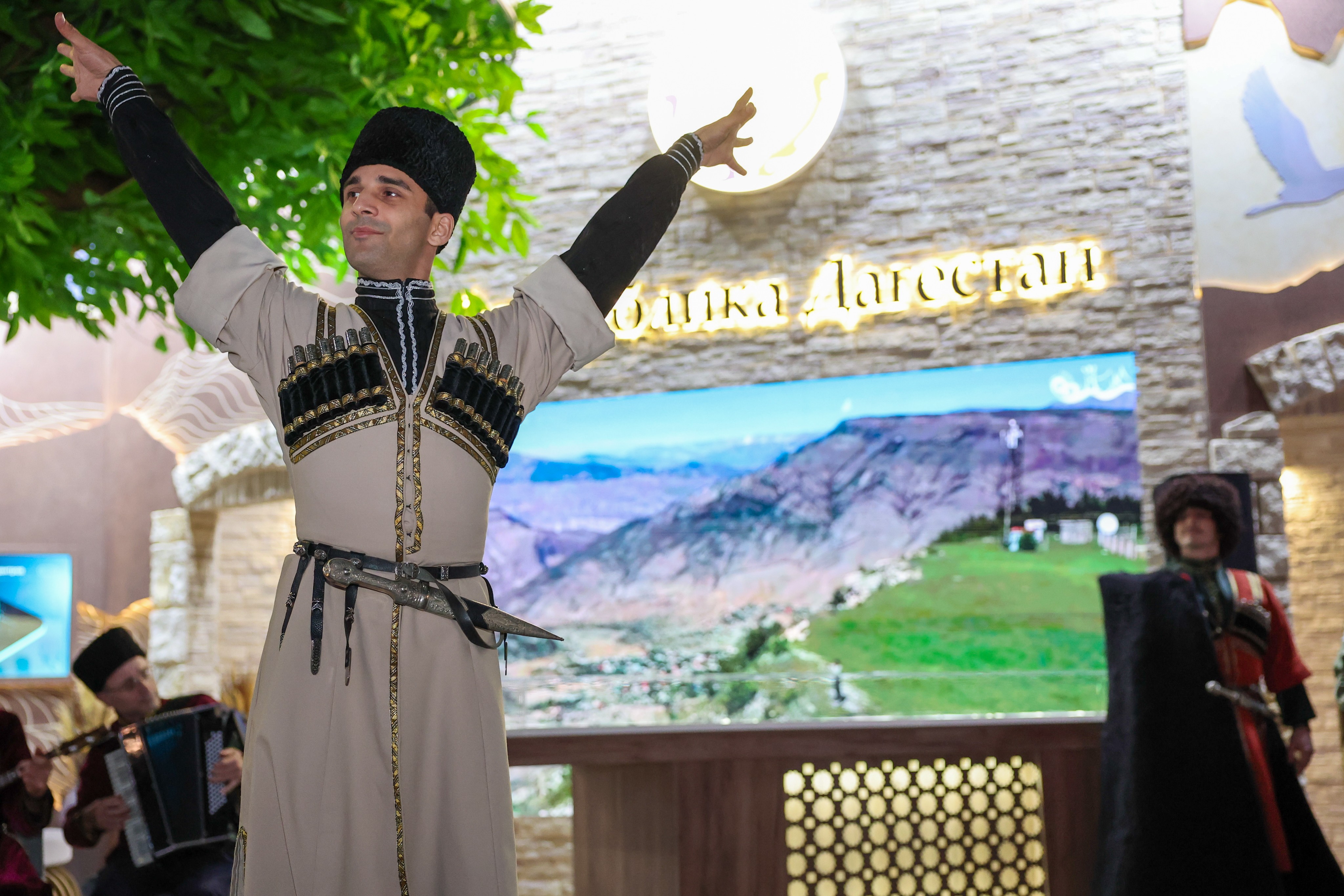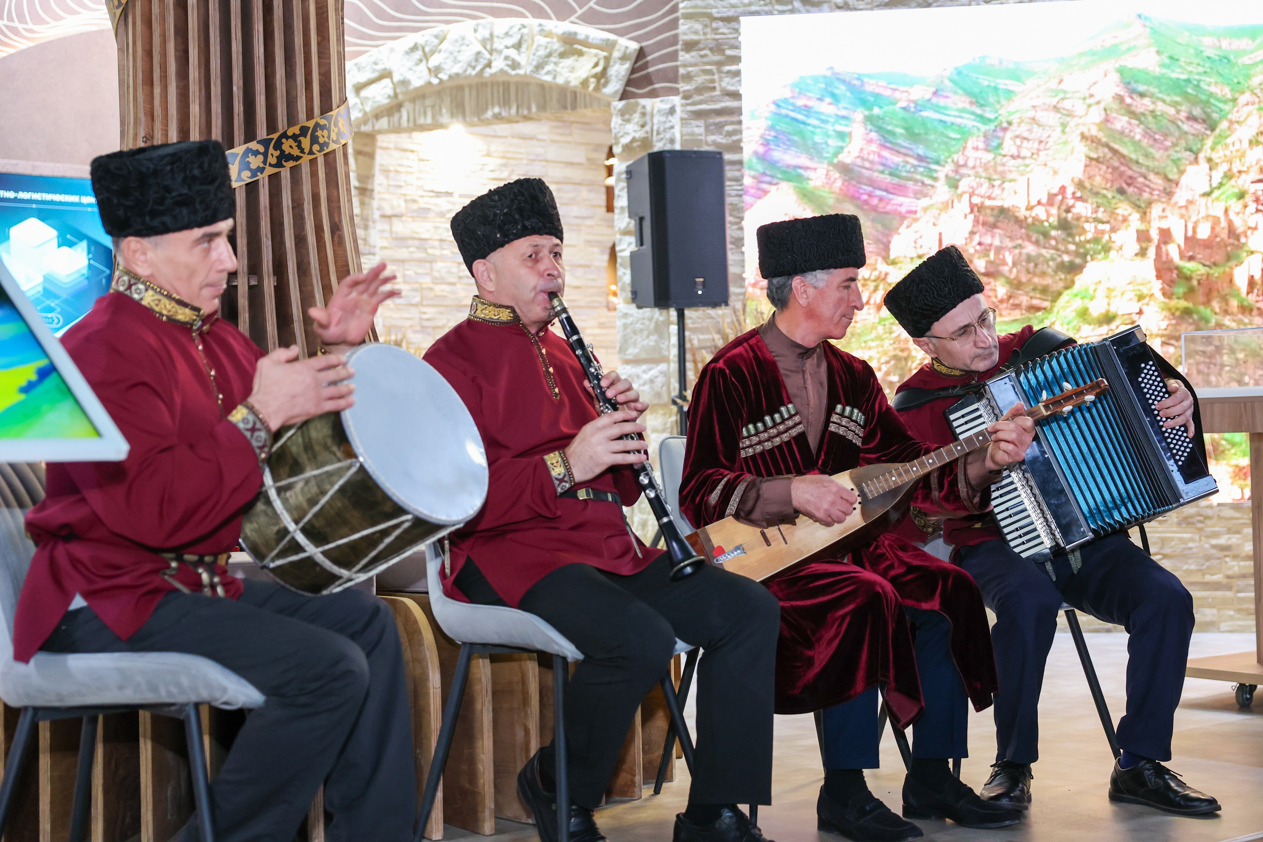 The cultural and educational programme began with national dances. An orchestra of folk instruments performed instrumental compositions of different peoples of Dagestan for guests, and Abdulla Magomedmirzaev, People's Artist of the Republic of Dagestan, sang several songs.