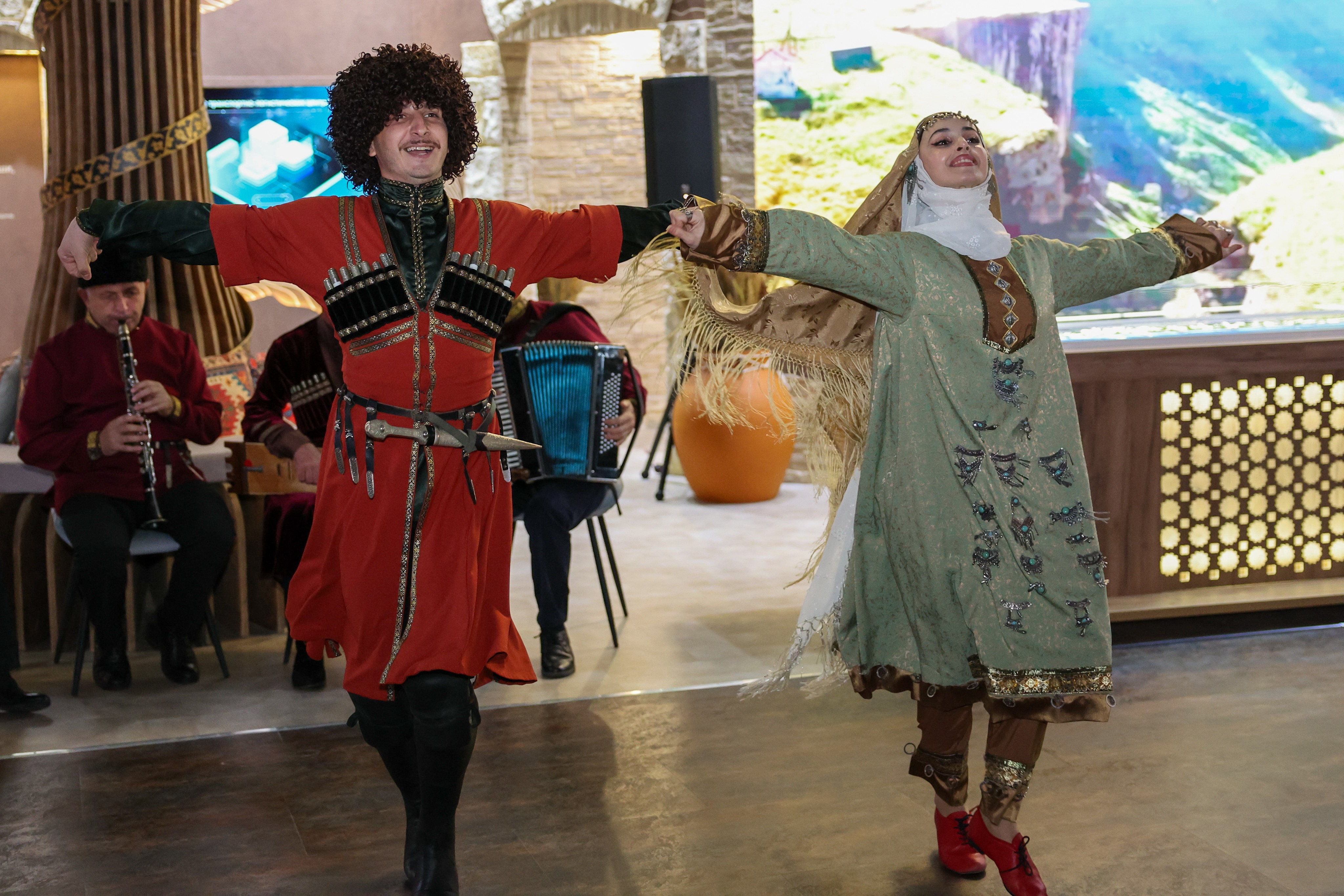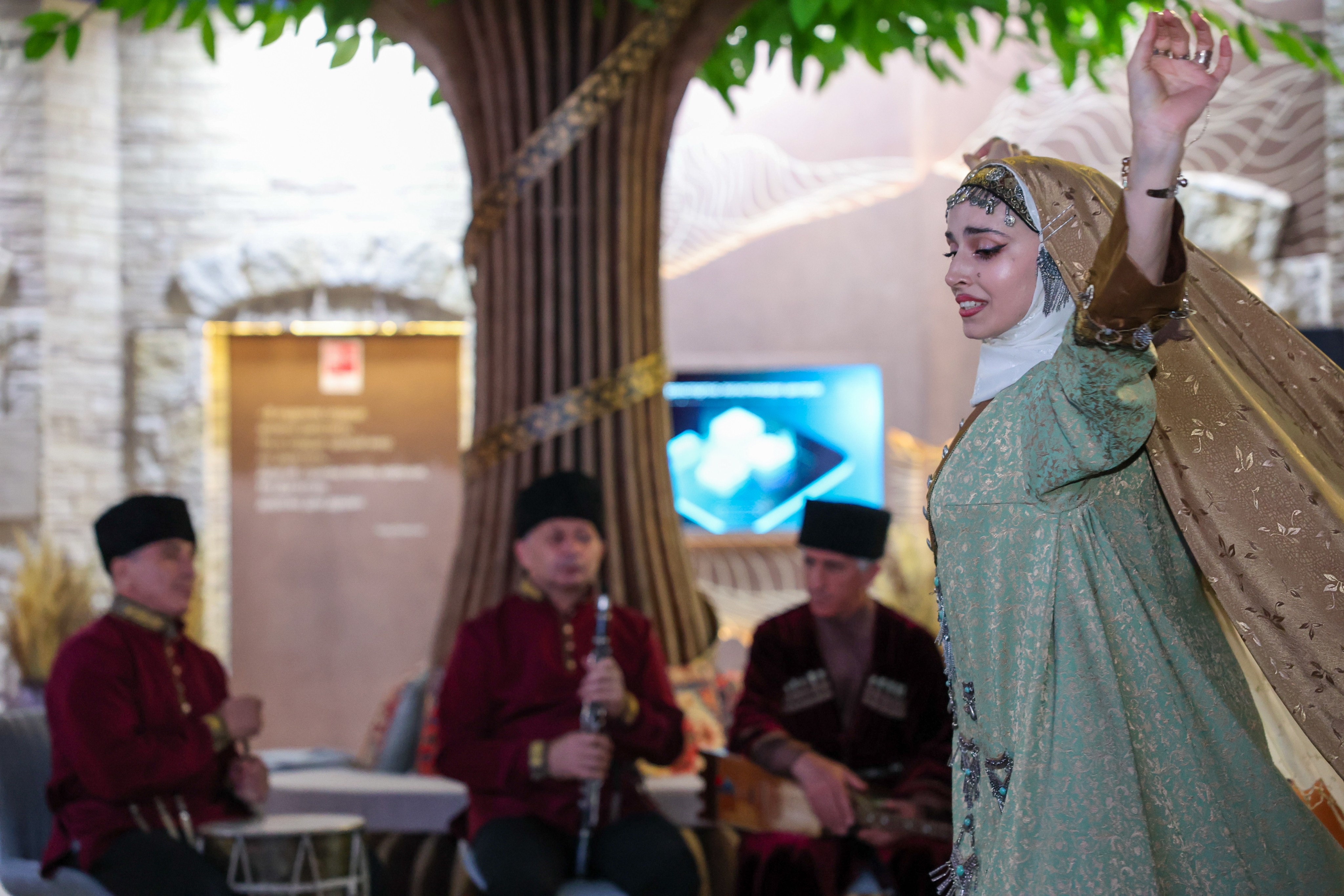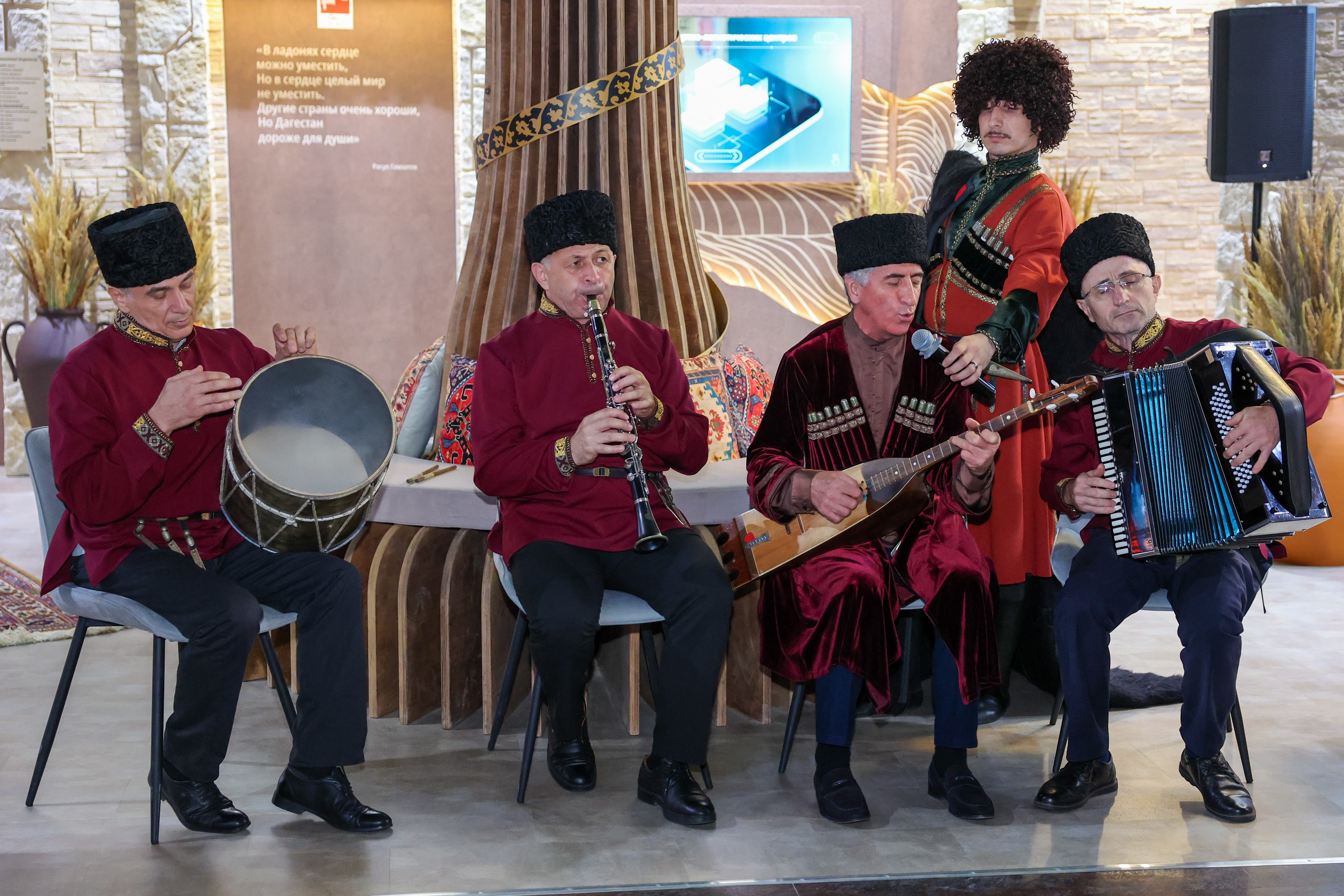 The cultural and educational programme began with national dances. An orchestra of folk instruments performed instrumental compositions of different peoples of Dagestan for guests, and Abdulla Magomedmirzaev, People's Artist of the Republic of Dagestan, sang several songs.