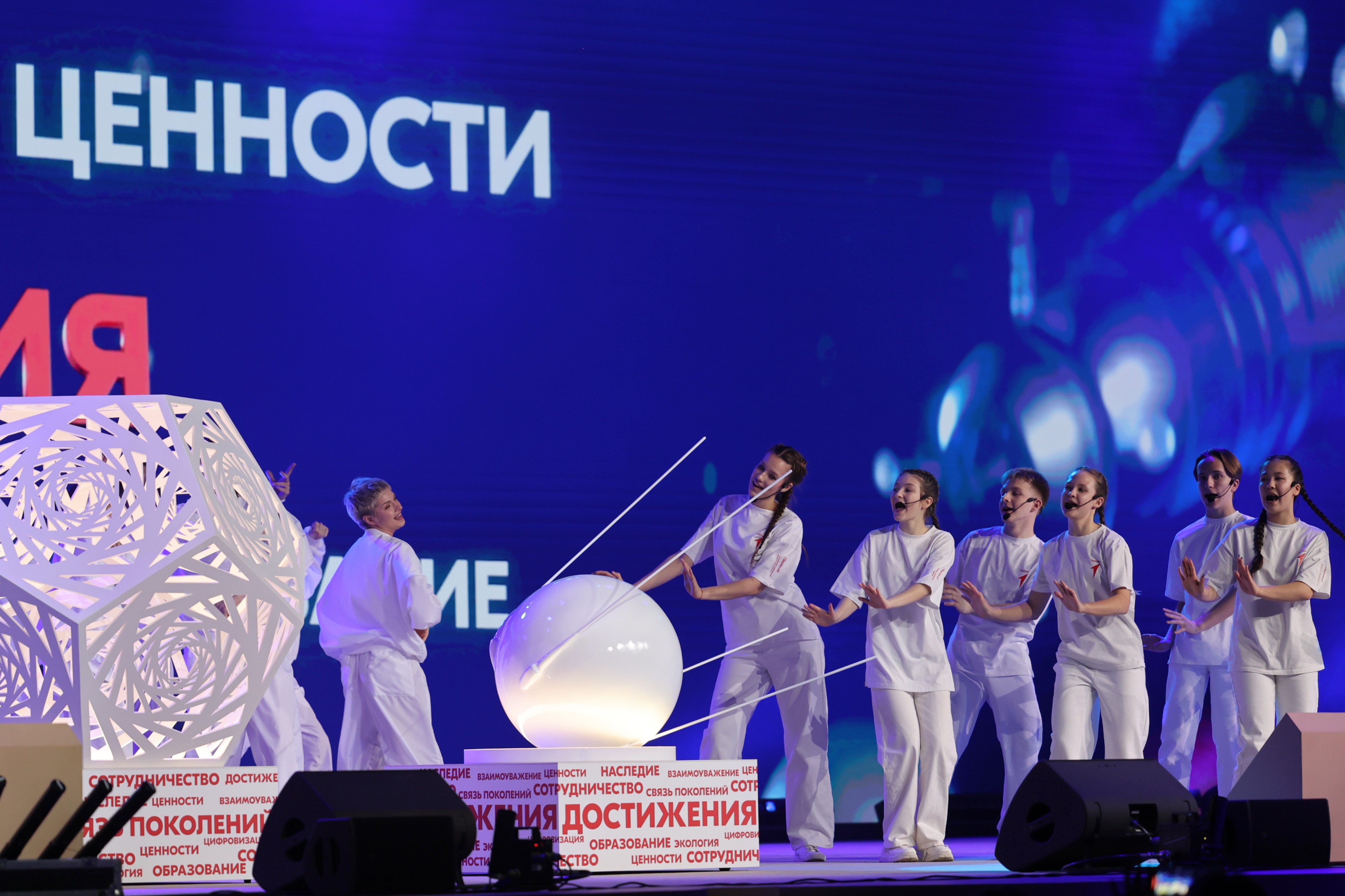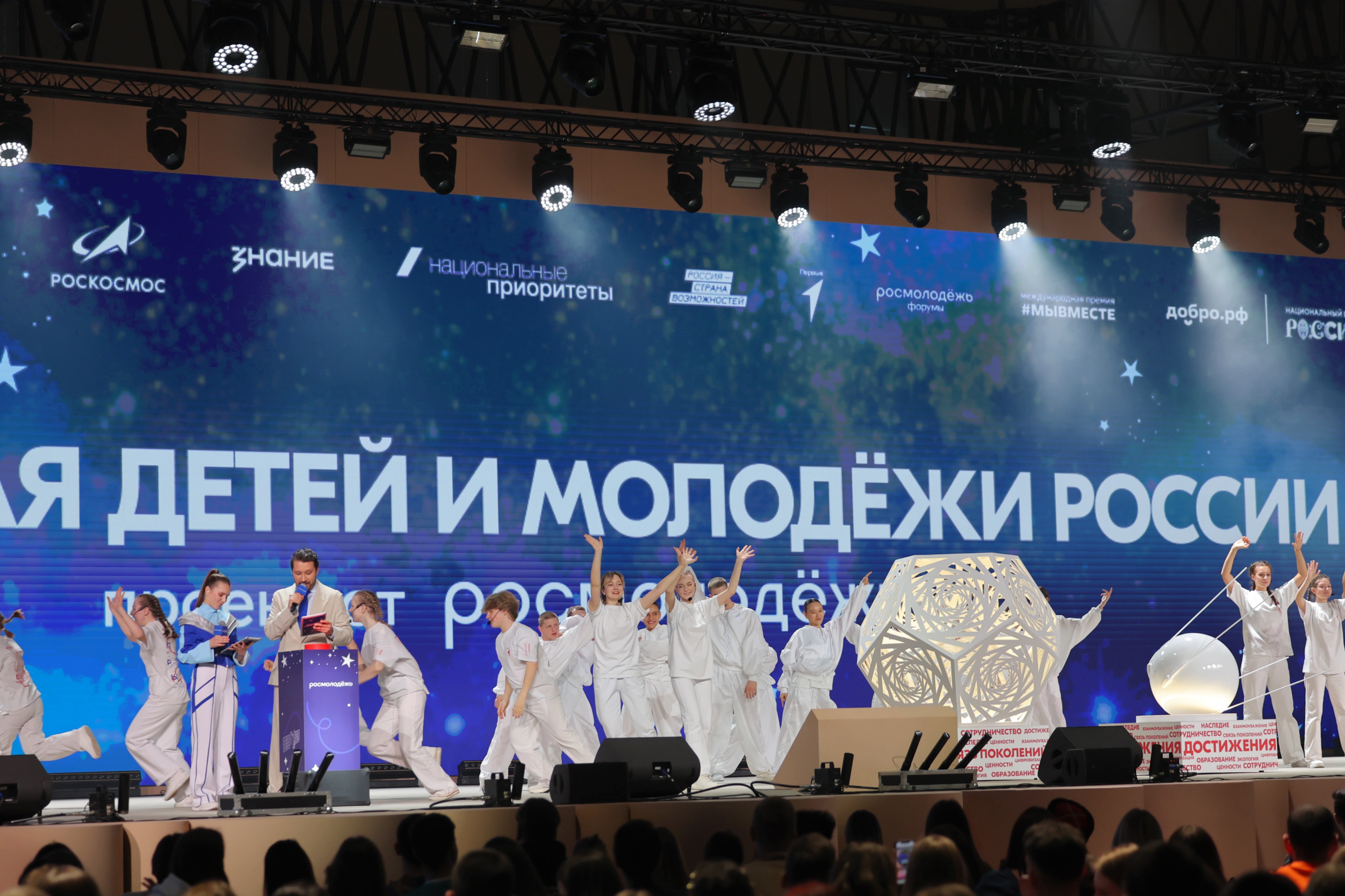 At the solemn ceremony "The Universe of Children and Youth of Russia" with the participation of First Deputy Chief of Staff of the Presidential Executive Office of Russia Sergei Kiriyenko, the concept of the national project and forums of Rosmolodezh was presented, accompanied by interactive sessions and speeches by key figures. The audience enjoyed creative performances by artists and thematic episodes highlighting important values for the country.